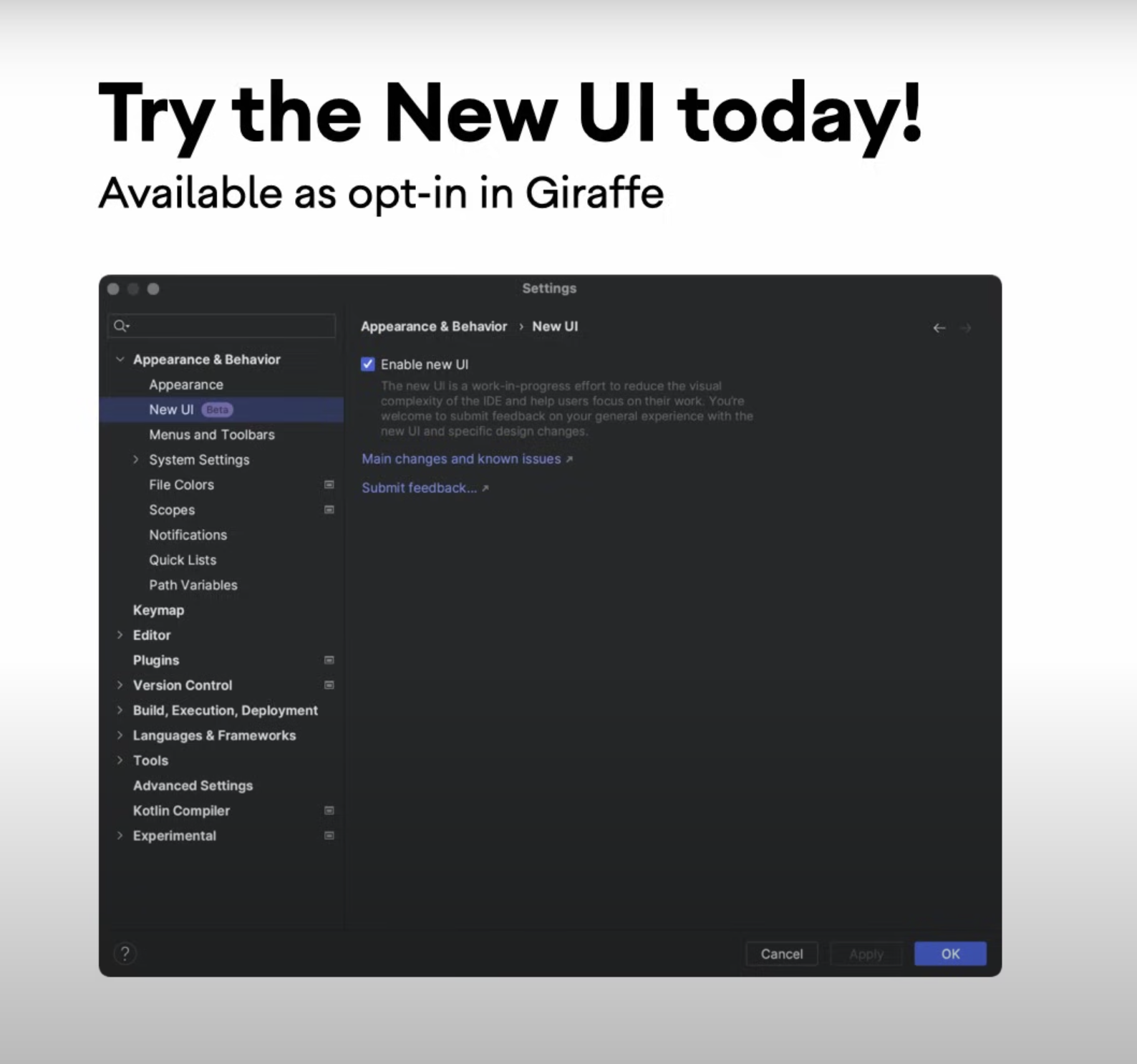 오늘은 안드로이드 스튜디오의 BETA 기능으로 추가되어 있는 NEW UI에 대해 알아보도록 하겠다!